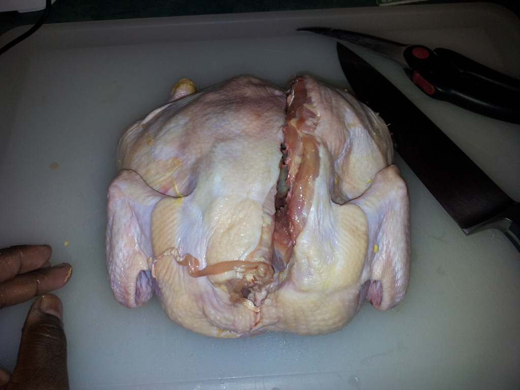Next step was the trim the hide and fat cap off each shoulder and slather each with yellow mustard to give the rub something to hold on to.