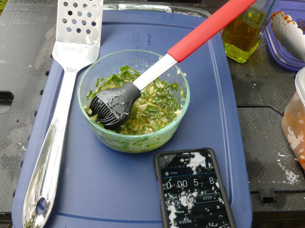 Here you can see my phone playing double duty as a timer for the breasts.  I can get a bit anal about these things sometimes. The basil baste is in the center of the photo.