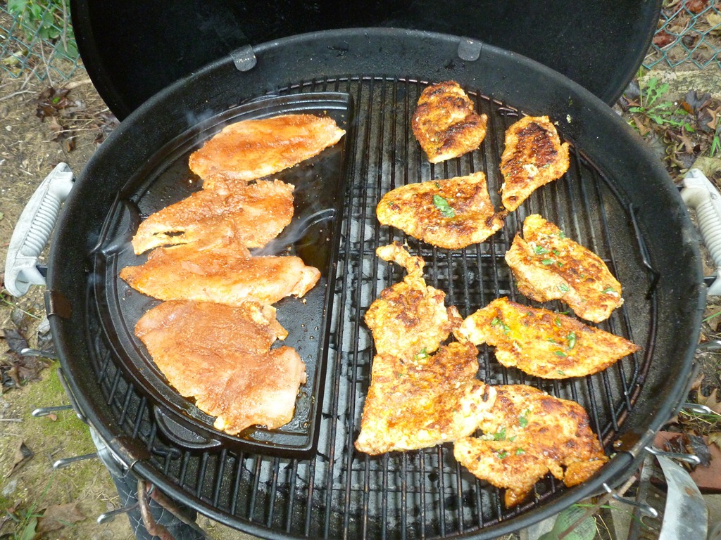 It is possible to make crunchy and grilled chicken breast at the same time on the grill. This isn’t KFC styled crunchy but there’s a good bit of attitude in each bite of these. This cook is a variation of a recipe in  Bill and Cheryl Jamison’s Chicken on the Grill: 100 Surefire Ways to Grill Perfect Chicken Every Time